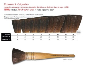 Pincel para jaspear en petigrís puro. Fijado con plumas. Redondo con extremidad cuadrada. Mango corto incoloro.