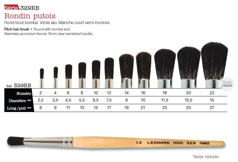 Pincel en turón. Redondo con extremidad abombada. Virola de aluminio. Mango corto bruto.