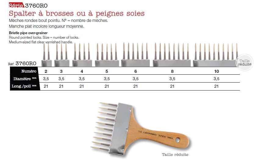 Bristle pipe over-grainer. Natural polished handle. Ø 3,5 mm. Length out : 21 mm for all sizes.