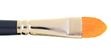 Golden synthetic 0,10mm filament watercolour & gouache brush. Flat filbert shaped. Seamless nickeled brass ferrule. Short pearly blue handle with orange tip.