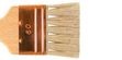 Breiter Pinsel aus Borsten. Flach. Einzeldicke. Kupferzwinge. Flacher kurzer naturlackierter Stiel.