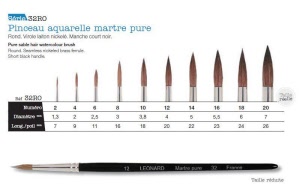 Pincel para acuarela en marta pura. Redondo. Virola de latón niquelado. Mango corto negro.