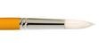 Extra-fine interlocked Chungking bristle brush. Round. Long seamless nickeled brass ferrule. Long yellow handle with blue tip.