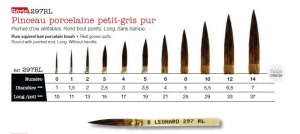 Pincel en petigrís puro para la porcelana. Fijado en una pluma. Redondo con extremidad puntiaguda. Longitud de pelo : larga. Sin mango.