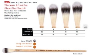 Pincel en filament synthetico 0.07 mm. Fijado con plumas. Redondo con extremidad abombada. Mango largo incoloro.