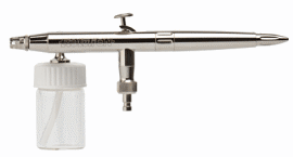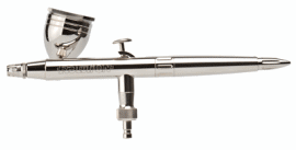 Like Evolution Silverline but with sidefeed metal cup for gravity feed and 2 paintglasses + adaptor for suction feed.