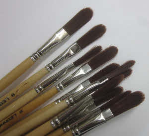 Marbling brush in burgundy synthetic Similhair fibre. Flat with domed end. Long length out. Stainless Steel wire bound. Long raw handle.