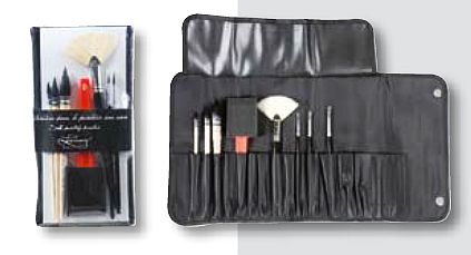 537PF nr 50 ( foambrush ) / 2012 RO Squirrel Petit Gris nrs 2, 6 en 10 / 8206 RO Tibet Goathair nrs 0, 2.5 , 5 and 9276 EV Bristle nr 12 fan brush with short handle.