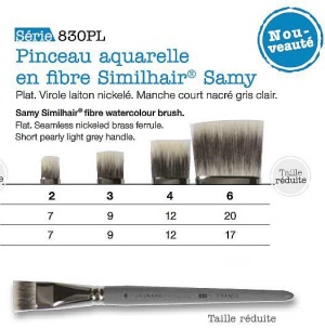 Synthetic Similhair Samy watercolour brush. Flat. Seamless nickeled brass ferrule. Short pearly light grey handle .