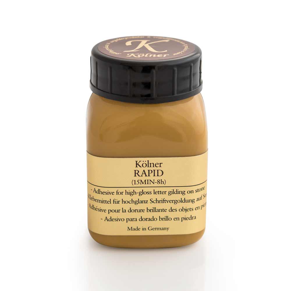 Kölner rapid Stone Mason mirror gloss gilding, yellow, drying time only 15 minutes, open time up to 8 hours!A new acryl adhesive for outdoor use developed in particular for stone masons requirements with very special properties.