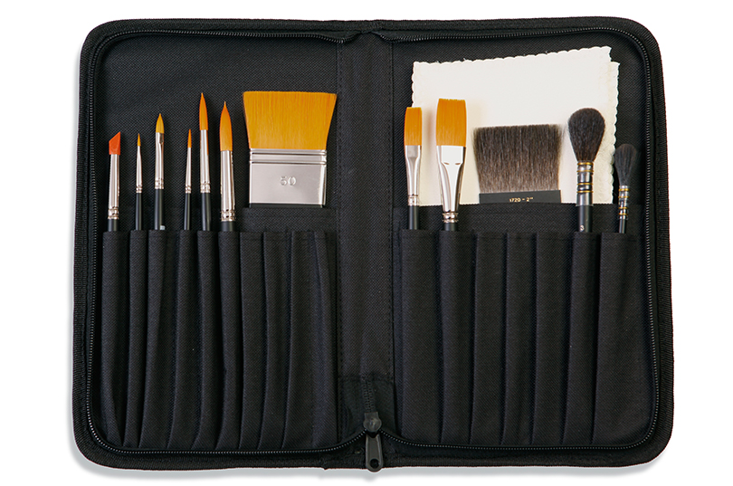 Kölner 2300 - Set gilding brushes and tools in a brushholder in black synthetic fabric for Instacoll Gilding