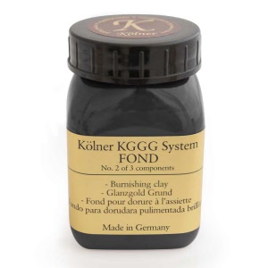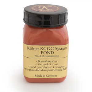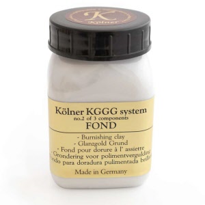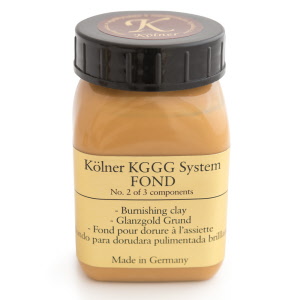 The three components are a surface sealer, KOLNER 123-A SEALER or SEALER P, the ready-to-use KOLNER BURNISHING CLAY and a gilder’s size made from COLNASOL GEL CONCENTRATE or COLNAFIX. No heating is required and the system can be applied and worked on over a period of several days.