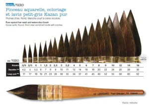 Pinceau aquarelle, coloriage et lavis en petit-gris pur. Entre-plumes. Rond. Manche court à crans incolore.