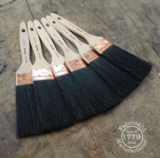Queue à battre soies noires. Plate. Sortie très longue. Virole cuivrée. Manche plat brut.