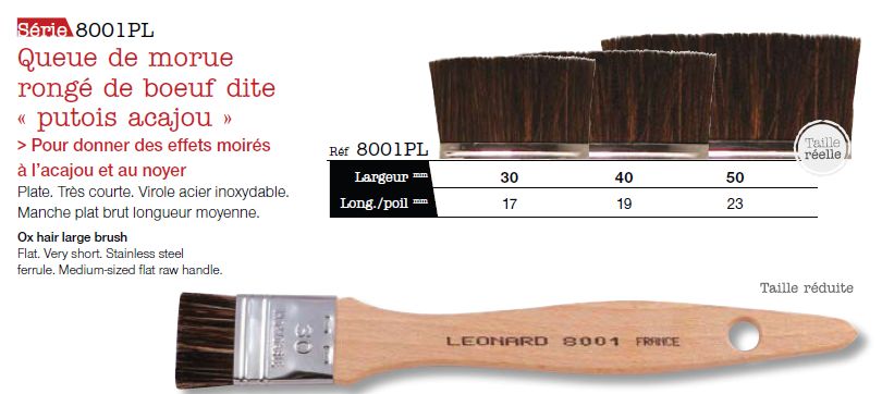 Queue de morue rongé de boeuf dite "putois acajou". Plate. Sortie très courte. Virole inox. Manche plat brut.