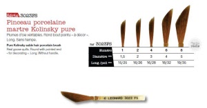 Pinceau porcelaine martre Kolinsky pure. Sur plume. Rond bout biseauté "filet sifflet". Sortie longue. Sans hampe.