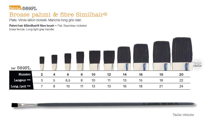 Brosse "Anthracite" mélange pahmi + fibre synthétique. Plate . Virole laiton nickelé. Manche long gris foncé, bout gris clair.
