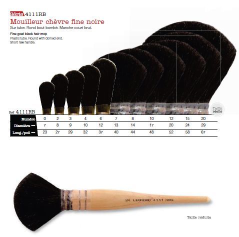 Mouilleur chèvre fine (grise ou noire selon stock). Entre-plumes. Rond bout bombé. Manche court brut.