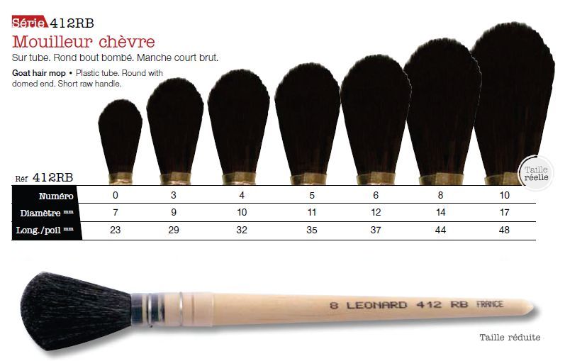 Mouilleur mélange poils fins. Entre-plumes. Rond bout bombé. Manche court brut.