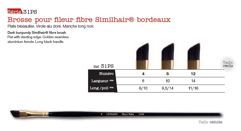 Similhair® Bordeaux : nerveuse avec beucoup de ressort, de résistance et de précision. Fibres en diametres 0.1 - 0.15 mm.