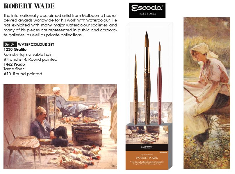 Ce type de poils est considéré optimal pour l'aquarelle. Escoda ne sélectionne que les meilleurs cheveux des martres mâles pour ces brosses. Ceux-ci proviennent de la région autour de Tajmir, à l'extrême nord de la Sibérie. Formant un point parfait et possèdant une capacité de rétention de fluides incroyable.