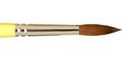 Aquarelpenseel in 50/50 marterhaar en synthetisch haar. Rond. Vernikkelde huls. Korte lichtgeel gelakte steel.