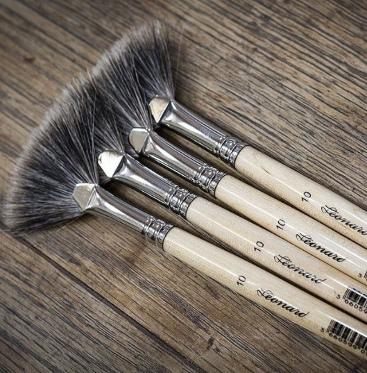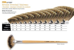 Waaierpenseel dashaar. Vernikkelde huls. Lange ongelakte steel.