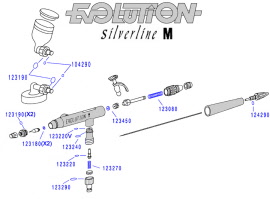 Bevat : verfbegrenzer , nozzle set 0.4 mm, sidefeed color cup 2 ml , 2 color glasses 15 ml, etui, handleiding.