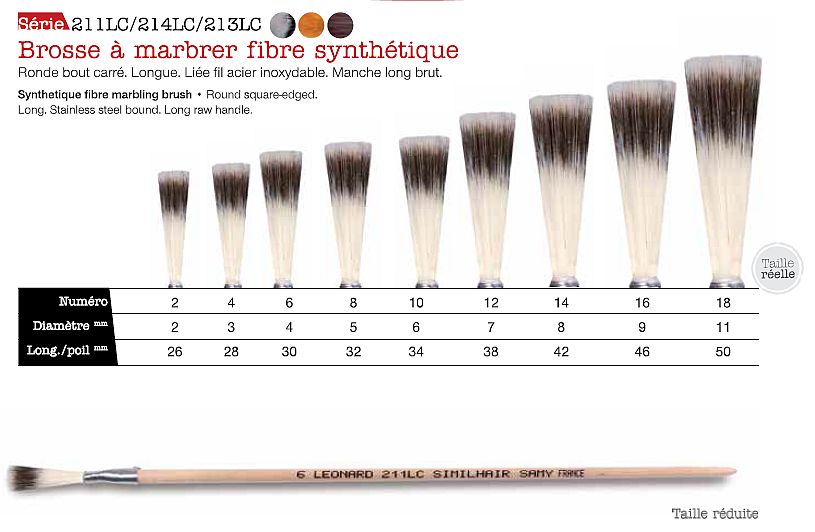 Marmerpenseel in Oranje 0.1 mm zacht synthetisch haar. Rond en recht. Handgebonden met RVS draad Lange ongelakte steel. Voor ACRYL-toepassing