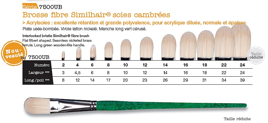 Penseel in wit synthetisch SIMILHAIR haar. Geschikt voor acrylverf verdund / normaal of dik.
