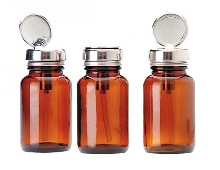 UV bestendig, rond, stabiel en solventbestendig. Door een lichte druk op de bovenzijde - bij geopende stand - wordt een minimale hoeveelheid solvent uit het flesje opgepompt naar het schaaltje bovenaan voor opname met pipet, penseel, pen enz... Niet geschikt voor te visceuze vloeistoffen.
