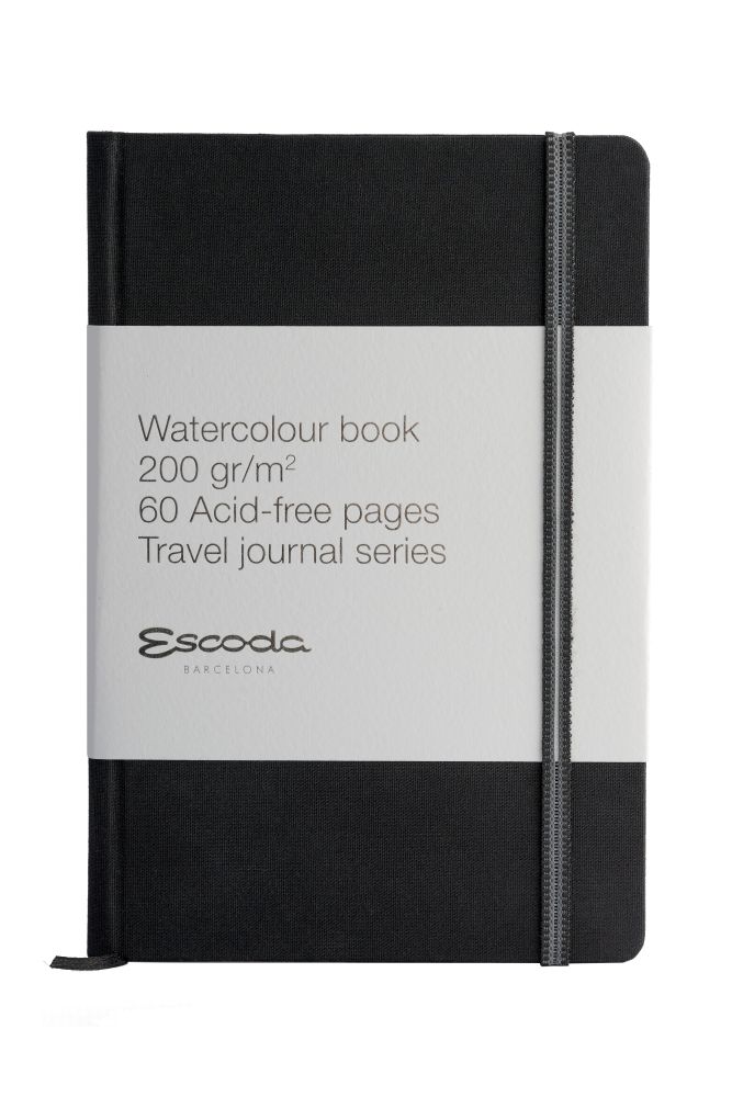 Aquarel schetsboek, gebonden zwart linnen versterkte kaft, 60 blad 200 gr/m² zuurvrij natuurlijk wit aquarelpapier met fijne korrel, portrait 14 x 21 cm, made in EU.
