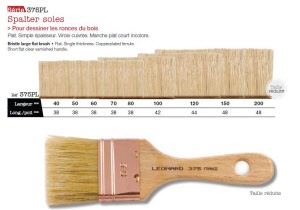 Spalter varkenshaar, enkele dikte ( +- 10 mm ), koper huls, korte steel natuur gelakt.